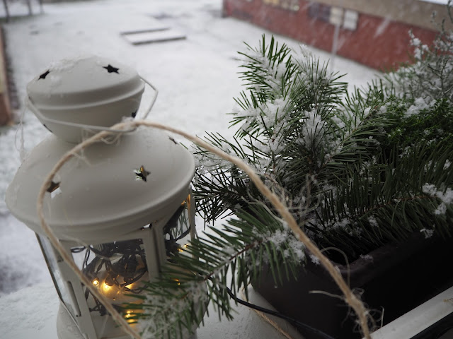 když jsme šli včera ráno do školky sníh poletoval tak, že ho Bertík chytal do dlaní. Bylo něco před osmou. Po návratu domů jsem rychle vzala foťák, abych to zachytila. To bylo kolem čtvrt na devět ..
