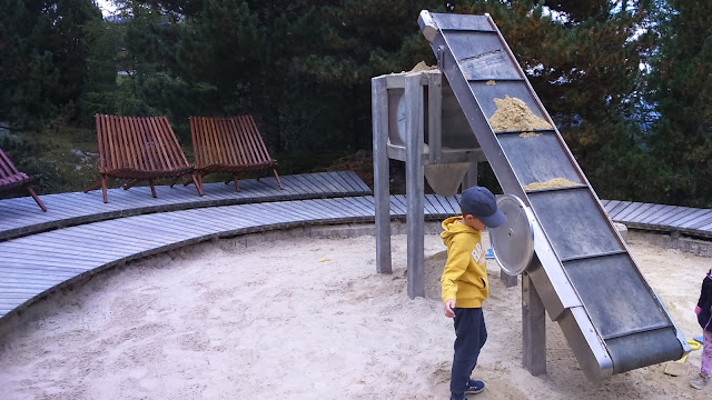 ... jenomže má takový zlozvyk. Kdekoli a kdykoli vylézt na cokoliv. I v Salzburgu vylezl v místním udržovaném parku soše málem na hlavu. Tam jsem ho ale stihla včas zarazit, tady ne :-(. Naštěstí bylo nedaleko dětské hřiště a to nás zachránilo ...