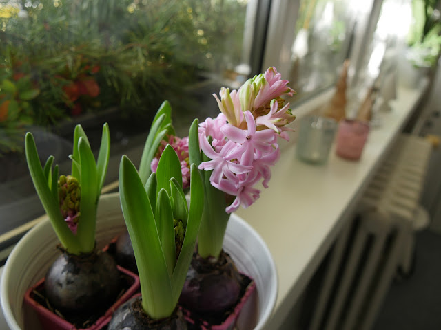 ... opět jsem neodolala hyacintům, ale kromě tohoto jednoho nevykvetly, což je sice z jedné strany smutné, ale zase jsme byli ušetřeni té jejich opojné vůně ...