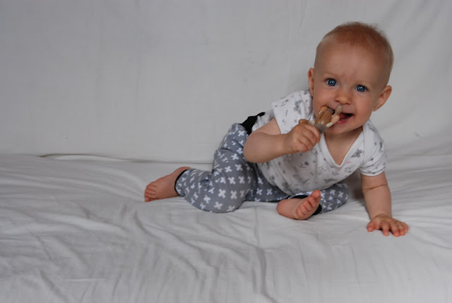 Objevila svůj jazyk, což je někdy dost vtipné. Vydrží ho vyplazovat pěknou chvíli. Paci, paci, pacičky pořád neumí, za to skvěle napodobuje intonaci některých slov. Holky mi často běží říct, že už řekla nějaké slovo, tak moc důvěryhodně to zní.