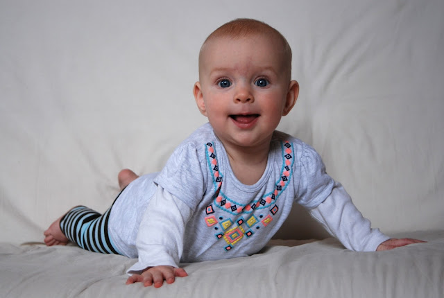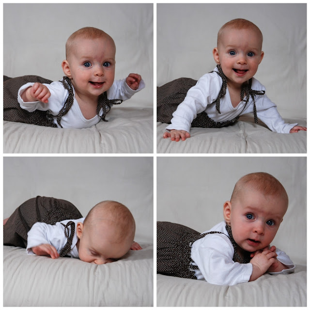 Když potřebuje nutně na něco dosáhnout, nevzteká se (vztek jako motor vývoje, Klárka díky němu v sedmi měsících stála), ani se na to po dvou pokusech nevykašle (takto flegmatická Terezka naopak začala chodit až ve čtrnácti měsících). Jednoduše se pár minut snaží a pak začne výskat, aby si mě přivolala jako podavače. I v ostatních vlastnostech (a vlastně i vzhledu) mi zatím připadá jako průsečík Klárky a Terezky.