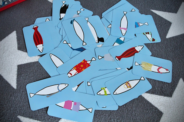 Každému hráči se rozdá 5 karet s jednotlivými rybičkami.