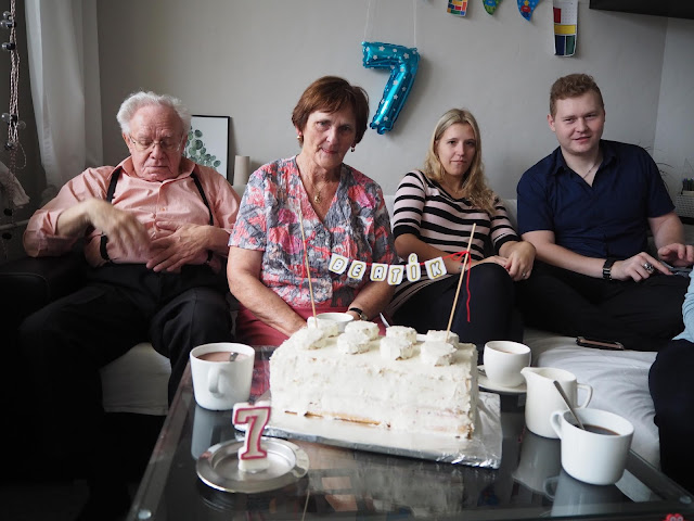 ... jsem ráda, že jsem se zase všichni sešli (kromě tety Jany. Byla v práci, dorazí jindy). Jenom máme málo místa, obývák si žádá změnu, ale ještě jsem nezačala ani s vyměřením, jestli se ta má představa do místnosti vejde ...