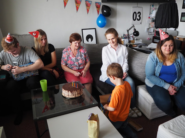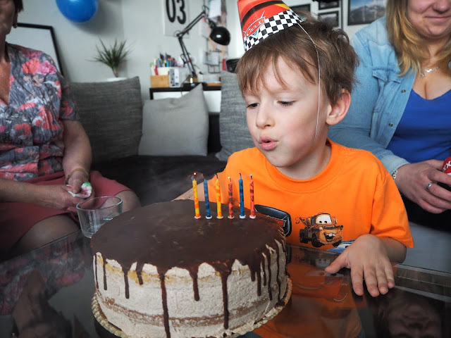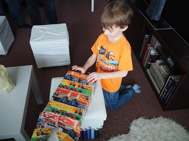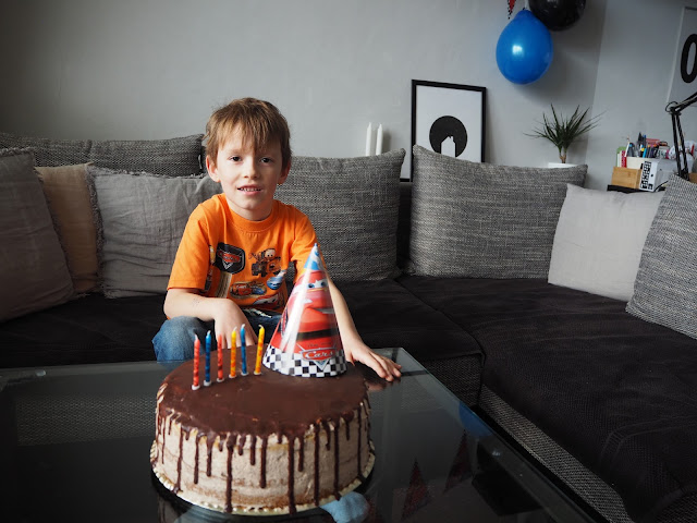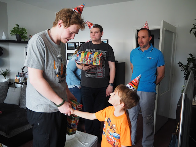 Bertík oslavil šest. Momentálně má hodně pubertální období. Když po něm něco chci, koulí očima, lehce odmlouvá, brblá a pořád se mu něco nelíbí. Ale ono to zase přejde, mívá to pravidelně :-)). V logopedii dělá pokroky s písmenkem „R“ – hezky naskakuje, ale začal flákat „L“, které už uměl skvěle. Když vypilujeme tohle, chybí nám už jenom „Ř“. Za odměnu, když se bude snažit má slíbenou lahev s McQueenem, jak jinak. Ve stejném duchu byla i oslava narozenin …