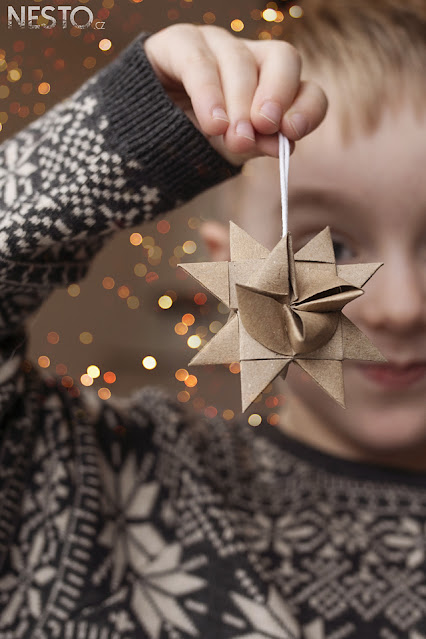 Podle mě tuto skládanku jen podle obrázku nepochopíte, tak můžu doporučit toto video, které je skvěle udělané. Následujte kroky a jistě se hvězda podaří. Já jsem si doma udělala menší verzi (jako ve videu, proužky 1,5cm a 37,5cm) a větší verzi (2,5cm a 60cm). Chyběl mi ale tak velký papír, tak jsem použila ten hnědý zbytek z role balícího papíru. Mám však v plánu zakoupit kvalitní bílý a vytvořit jich několik na stromeček. Jsou nádherné!