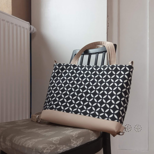 Ze zadního dílu jsem ušila sobě kabelku, z předního teď batoh. Celkově jsem batoh zase o kousíček posunula dál.