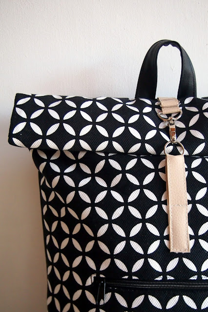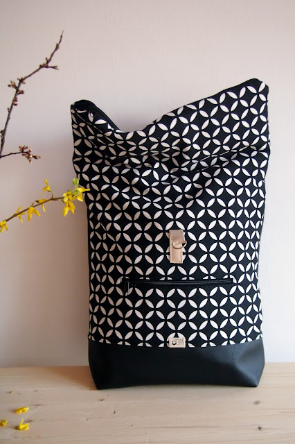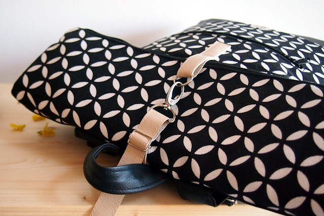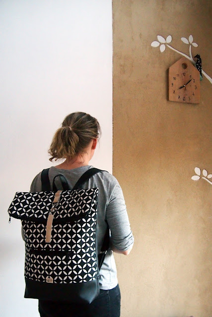 Mám velkou radost z tohoto batohu, je totiž recy - ušitý z šatů, které jsem ulovila jako sekáčový kousek na Náměšťském předvánočním trhu. Vzor látky, který je stejný jako naše nová dlažba v předsíni, ten jsem tam prostě nemohla nechat!