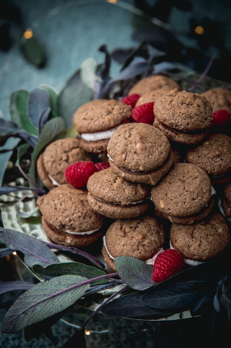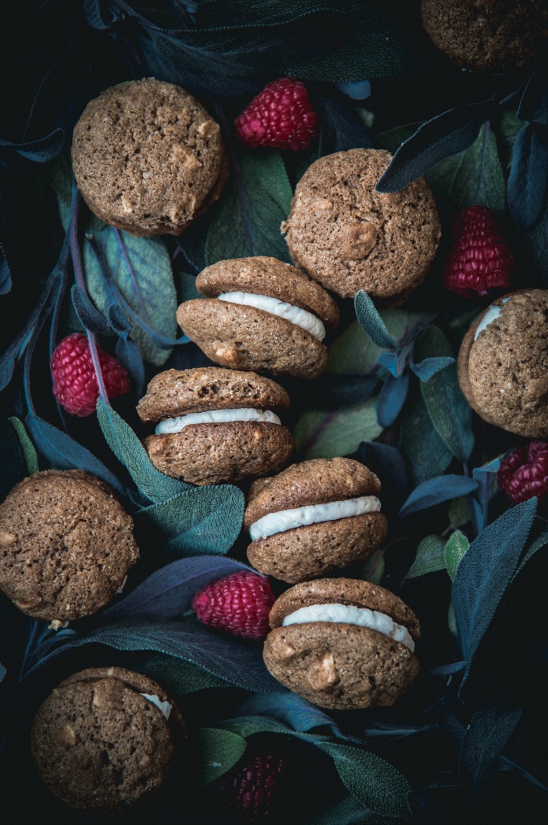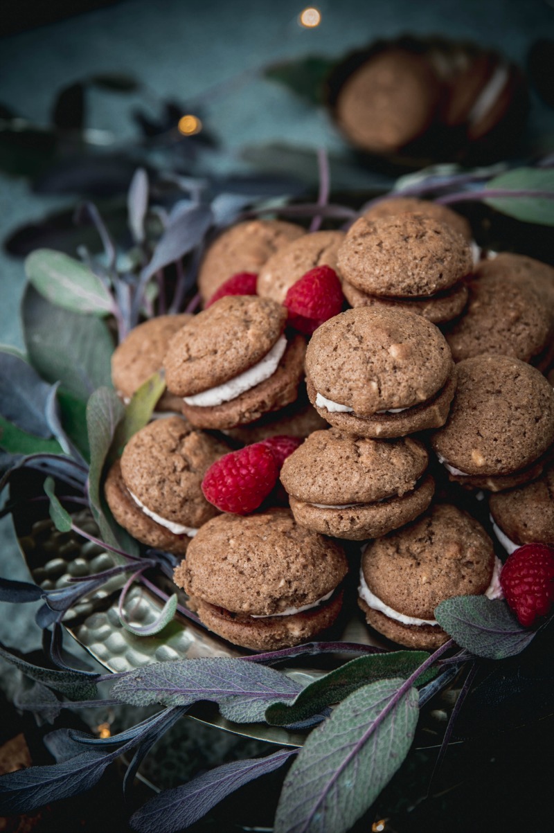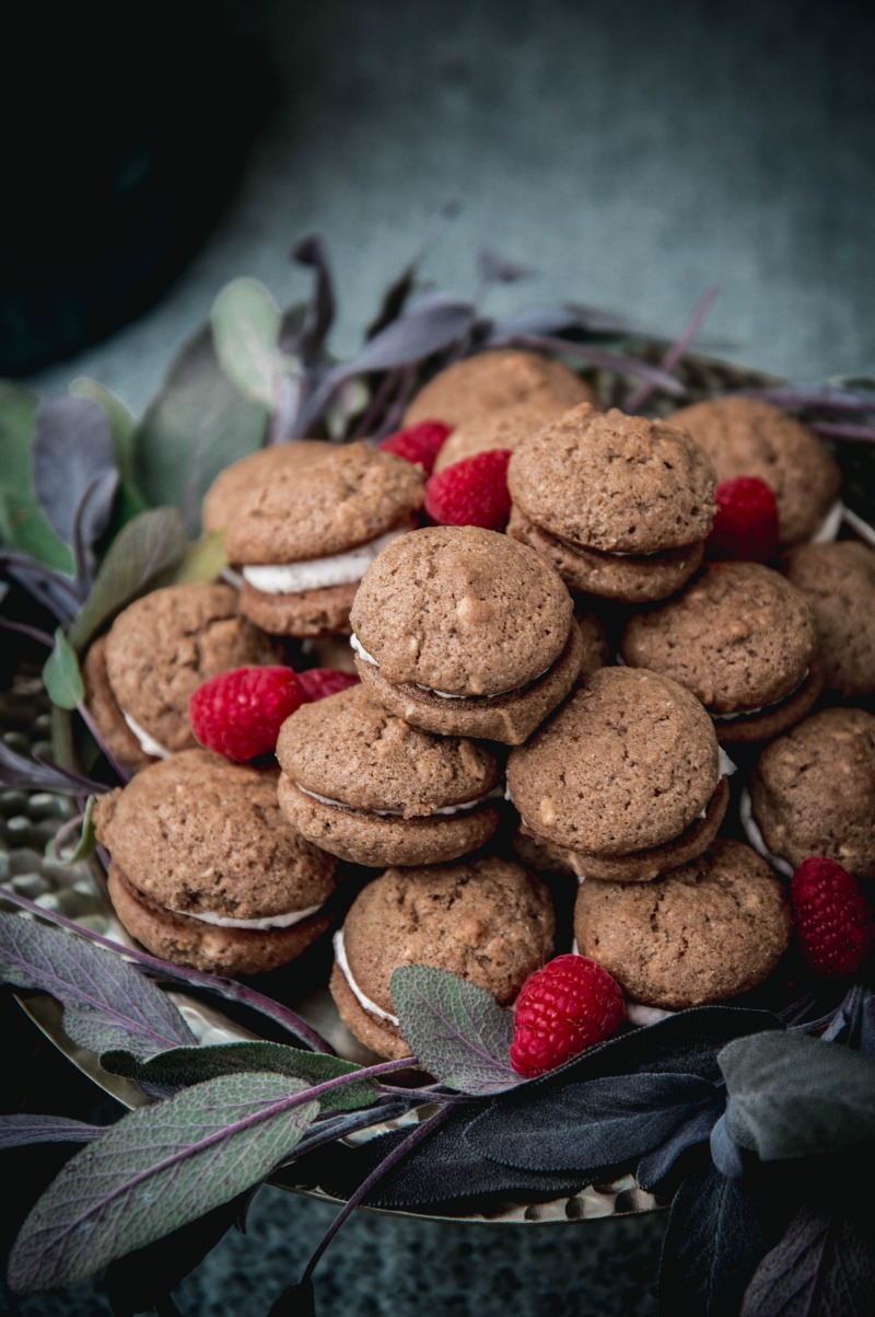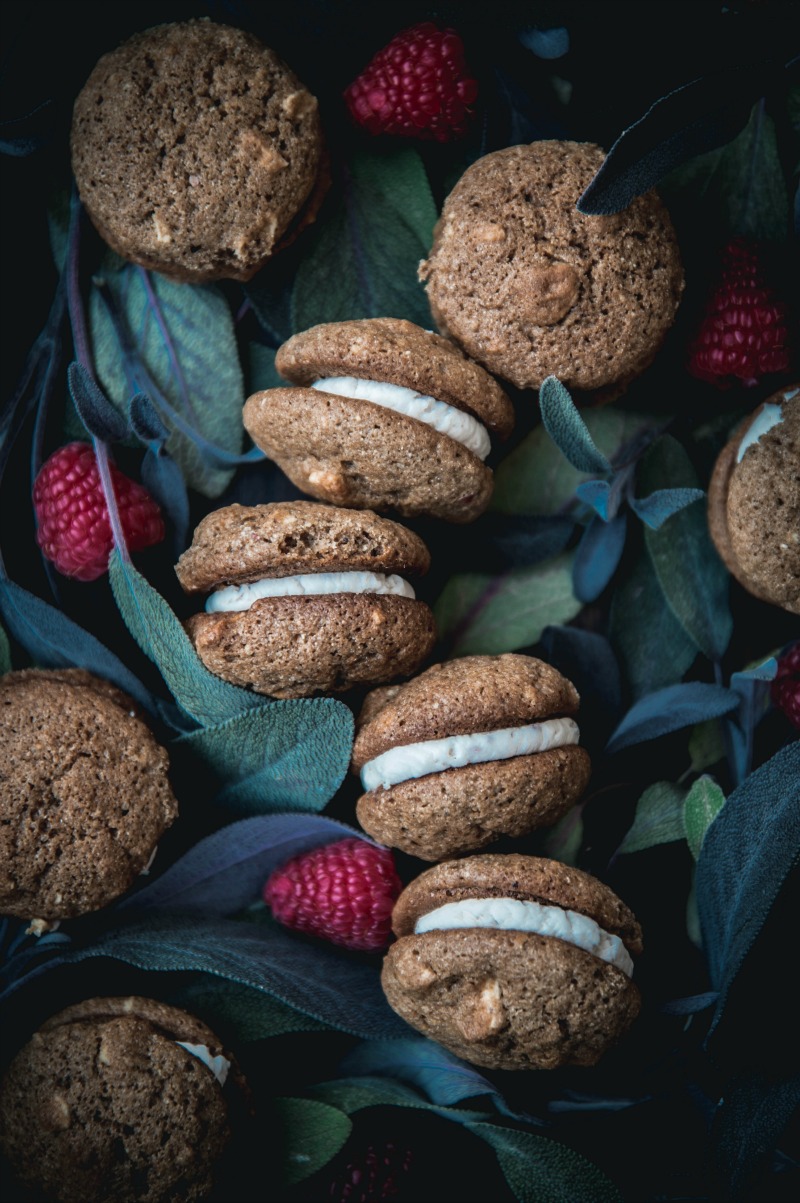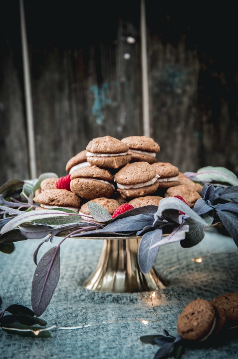 Piškotky vznikly vlastně úplnou náhodou (jak už to tak většinou bývá) a to už snad v listopadu. Úplně původně jsem měla totiž v plánu péct sušenky, ale původní recept jsem si trochu upravila a sušenky z něj úplně nevznikly. Zato ale vznikly malé nadýchané bochánky. Když jsem pekla druhou várku, udělala jsem těsto trochu tekutější, aby se dalo vytlačovat cukrářským pytlíkem. K vytvarování piškotků jsem použila plát na makronky s vystouplejšími okraji, ten se opravdu hodil, protože hromádky získaly krásný piškotkový tvar. Na úplný závěr jsem slepovala krémem z mascarpone s trochou rybízové marmelády. Klidně bych ji snesla víc, protože se v krému trochu ztratila a moc ho nezabarvila dorůžova, jak jsem si to představovala. V receptu jsem použila pohankovou mouku, které také dodá příjemnou oříškovou chuť.