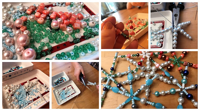 tak trochu jinak... Na výrobu potřebujeme drátkovou konstrukci s pevným středem a volnými rameny, korálky s dostatečně velkou dírkou uprostřed korálku a kleště, ideálně ketlovací. Konstrukci lze ze silnějšího drátku vyrobit i v domácích podmínkách. Já jsem ji však zakoupila, včetně dvou balíčků voskových perlí, v obchodě v