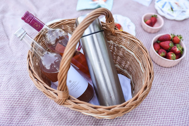 Příjemnou deku, která nekouše. Ta moje bavlněná je z Bella Rose, mají ji hned v několika barvách, šla do té růžové, jak jinak 😀 Je velká tak akorát pro tři lidi a vejdou se na ní ještě všechny ty dobroty. Do piknikového koše přibalte nějaké ovoce, které není potřeba složitě loupat a neušpiníte se od něj. Jahody, maliny, nebo borůvky to jistí. Něco sladkého na zub, třeba dokonalé dezerty z Bistra proti proudu, kam si pro ně nejčastěji chodím já. Peče je sama majitelka a jejím nadýchaným věnečkům neodolám ani tehdy, když se blíží plavková sezóna. Musíte sami ochutnat.