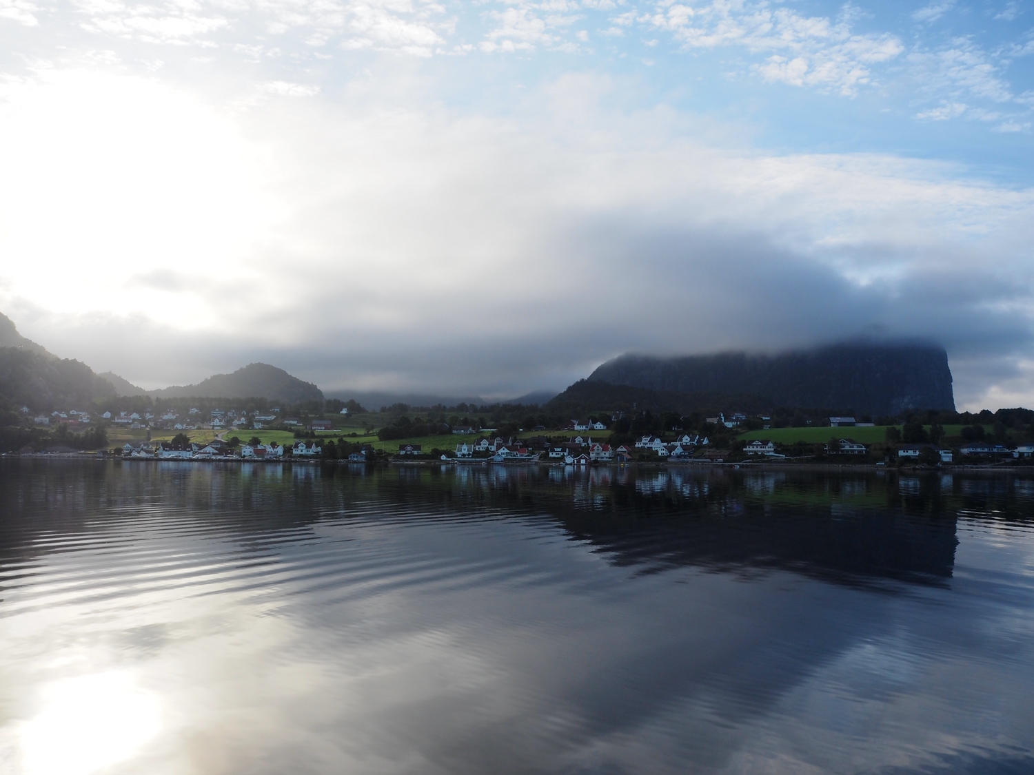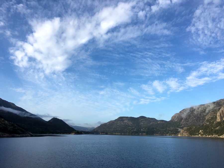 Takže takhle to, vážení, vypadá na samém konci Lysefjordu před sedmou hodinou ranní. Mlha, chlad a naprosté TICHO A KLID 🙂