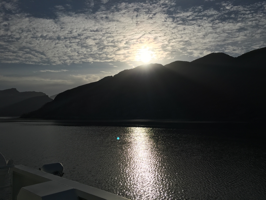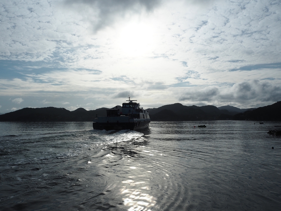 A teď pár fotek z trajektu. Nejdřív byla mlha a zima, po chvilce se ale udělalo jasno a svítilo sluníčko. Cesta trvala asi dvě hodiny, protože z Lysebotnu do Stavangeru je to docela dálka (Lysefjord má na délku asi 42 km) a museli jsme navíc jednou přestupovat 🙂 Ale upřímně, já si tu ranní vyhlídkovou plavbu po fjordu natolik užívala, že čím delší by ta cesta byla, tím líp!