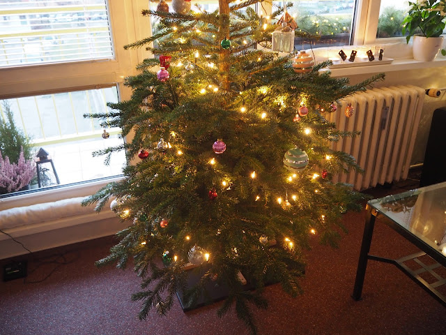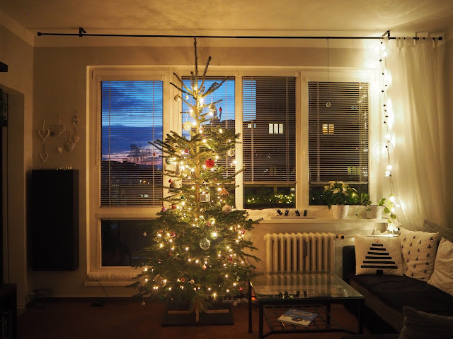 ještě nikdy jsme neměli nastrojený stromeček s takovým předstihem jako letos. Manžel ale ještě na pár dnů odjíždí, proto musel dát stromeček do stojanu a když už byl stromeček ve stojanu, museli jsme mu dát světýlka i baňky. Jinak bych celý týden od Bertíka poslouchala, když už bude stromeček dělat a to by bylo náročné 😉 …