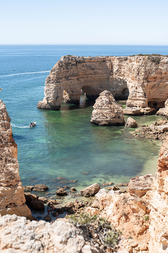 Praia da Marinha je pláž, kterou nesmíte vynechat. My se tu sice jen zastavili na chvíli, ale i tak to stálo za to. Břehy jsou poseté útesy a skalami na pláži a v oceánu, kdyby byly porostlé zelení, připomínali by pobřeží někde v Thajsku. Pokud rádi fotíte, tady si přijdete na své. Mrzelo mě akorát, že nemáme dron, z něj by byly neskutečné fotky. Tohle místo je oblíbené i proto, že je tu spousta výletních lodí, kajaků a paddleboardů k zapůjčení. Poblíž je totiž přírodní jeskyně Benagil, populární turistické místo. My jsme si to nechali ujít, protože čluny, ani kajaky tu nezastavují uvnitř, jen poblíž na fotku a pak jedou zase zpět. Ideální, pokud máte vlastní paddelboard a doplujete si sem třeba brzo ráno, ať to tu máte trochu pro sebe.