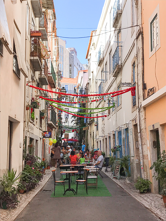 A tak jsme měsíc a půl před odjezdem koupili letenky na začátek srpna a doufali, že se mezitím nezavřou hranice. Jsem ráda, že jsme to nenechali na září, protože ta nejistota by mě moc neuklidnila. Z Prahy jsme lětěli rovnou do Lisabonu. Nebýt té příšerné klimatizace v letadle, z které mě pak celý večer rozbolela hlava, byl by přílet úplně na pohodu. Takže jsem se po ubytování hned svalila na postel a snažila se z toho aspoň trochu vyspat. Zmohla jsem se večer už jen na krátkou procházku na Obchodní náměstí a hlavně ulovit Pastel de nata. Pokud jste je neochutnali, jsou to košíčky z křehkého těsta zapečeného s vanilkovým krémem ze žloutků. A taky moje závislost, na které jsme si tu ujížděli skoro každé ráno. Jsou prostě boží. Na ty nejlepší jsme chodili do Fabrica da Nata. Kafe bylo slabší, ale košíčky tu fakt umí. A to sezení u nich nahoře...Navíc kousek odtud neminete slavný výtah Santa Justa, který spojuje čtvrť Baixa do výše položeného Bairro Alto.