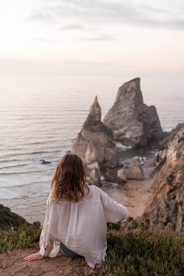 Kousek od Azenhas do mar je nejzápadnější cíp Evropy a Portugalska, Cabo da Roca. Mys se tyčí 100 metrů nad oceánem a kolem je rozeseto hned několik kouzelných pláží. My sestoupali po strmé štěrkové stezce k jedné z nejhezčích portugalských pláží, Praia da Ursa. Cesta sem není snadná a rozhodně ji nedoporučuju v letní obuvi a pokud nejste zkušení lezením po horách, snadno vám tu po štěrku může uklouznout noha. My to ale dali, museli, protože tohle místo je fakt pohádkové. I z útesu nad pláží máte krásný výhled, pokud se vám nechce až dolů. Já tuhle pláž měla v telefonu uloženou už několik let, takže jsem ji nemohla vynechat. Ocitnete se uprostřed obřích skal na malebné pláži, kde je jen pár lidí a naprostý klid. Alespoň, když jsme tam byli my, těsně před západem. Přijde mi, že všechny portugalské pláže jsou před západem poloprázdné. Někteří tu dokonce přespávali v hamakách zavěšených o útesy. Odsud se mi vůbec nechtělo, ale jít po stezce po tmě taky ne. Stihli jsme to k autu jen tak tak. Na tohle místo se musím jednou vrátit.