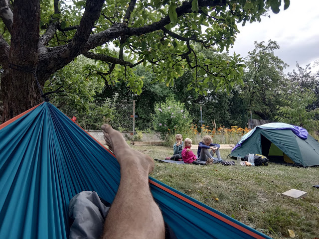 Na kole s námi jezdí i holky - jen je třeba je trochu uplácet slíbeným smažákem, koupalištěm v cíli nebo nocováním na zahradě u kamarádů. Je to často dost psychicky náročné (hlavně pod kopcem), ale pak nám oběma vyrazí dech, když jedou půl dne v lijáku a ani nemeknou. Klobouk dolů...