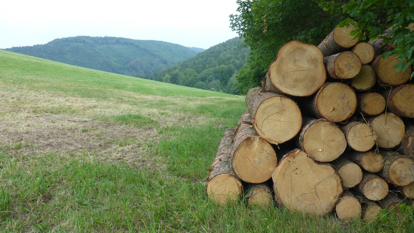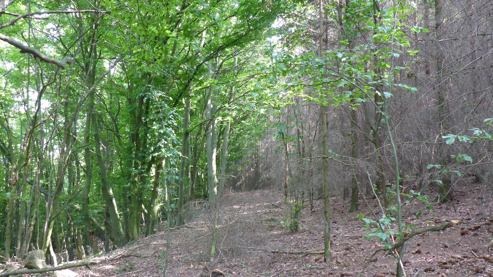 | český les dneška - vlevo listnatý, vpravo (suchý) jehličnatý |