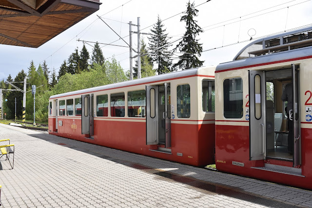 Poslední den před odjezdem jsme si tedy řekli, že už to nebudeme s chozením přehánět a projedeme si jenom horská městečka místním vláčkem. Dojeli jsme do Štrby, kde jsme sedli na vlak do Štrbského Plesa a tady si dali delší zastávku.