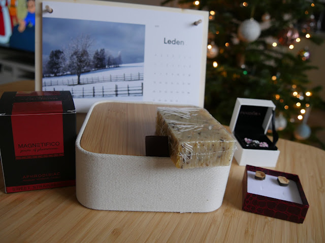 ... já drobnůstky na okrasu, kalendář, mýdlo, šperkovnici a svíčku ...