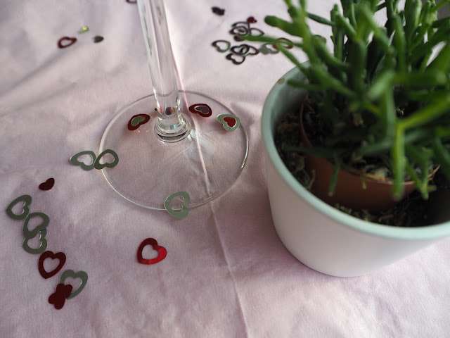 … uvnitř měli hezkou Valentýnskou výzdobu. Jenom na stolech. Tahle se mi opravdu líbí a nejen kvůli růžové ;-). Je nenásilná, jednoduchá a všeříkající …