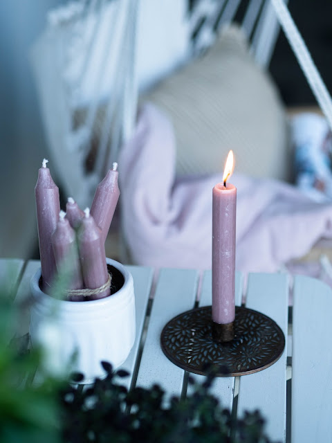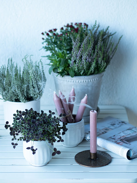 Takmer som zabudla, že u mňa obzvlásť na jeseň nemôžu chýbať sviečky. Nový svietnik v mosadznej farbe a k tomu staroružové sviečky boli láska na prvý pohľad! Keď už nebude možné večer sedieť vonku, zoberiem si ich do obývačky. Na zimu sviečky vymením možno za zelené. Mám rada kúsky, ktoré sa dokážu prispôsobiť sezóne ♥