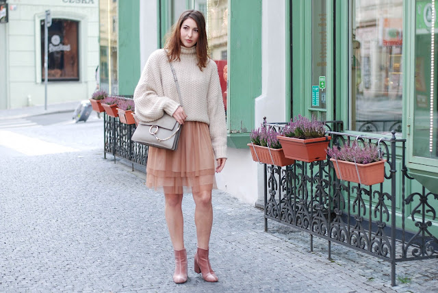 HM jumper, DIY tulle skirt, Bershka velvet boots, Chloé bag