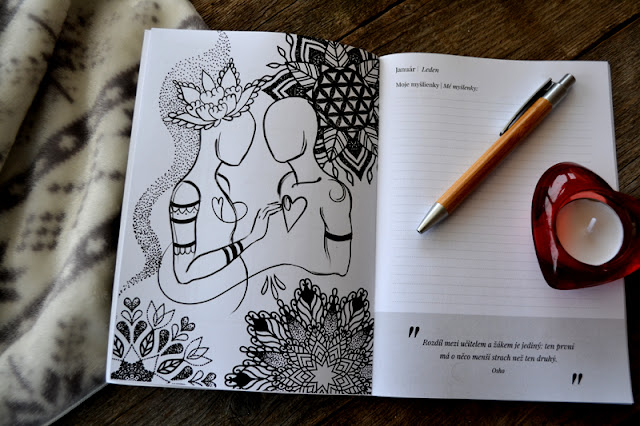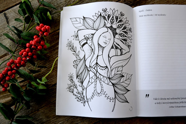 Na záver vám ešte chcem ukázať tento nádherný diár. Každý mesiac roka je doplnený krásnou ilustráciou od Alma Floresty a tiež pozitívnou myšlienkou alebo citátom. Zápisník mi bude určite príjemným spoločníkom počas celého roka .
