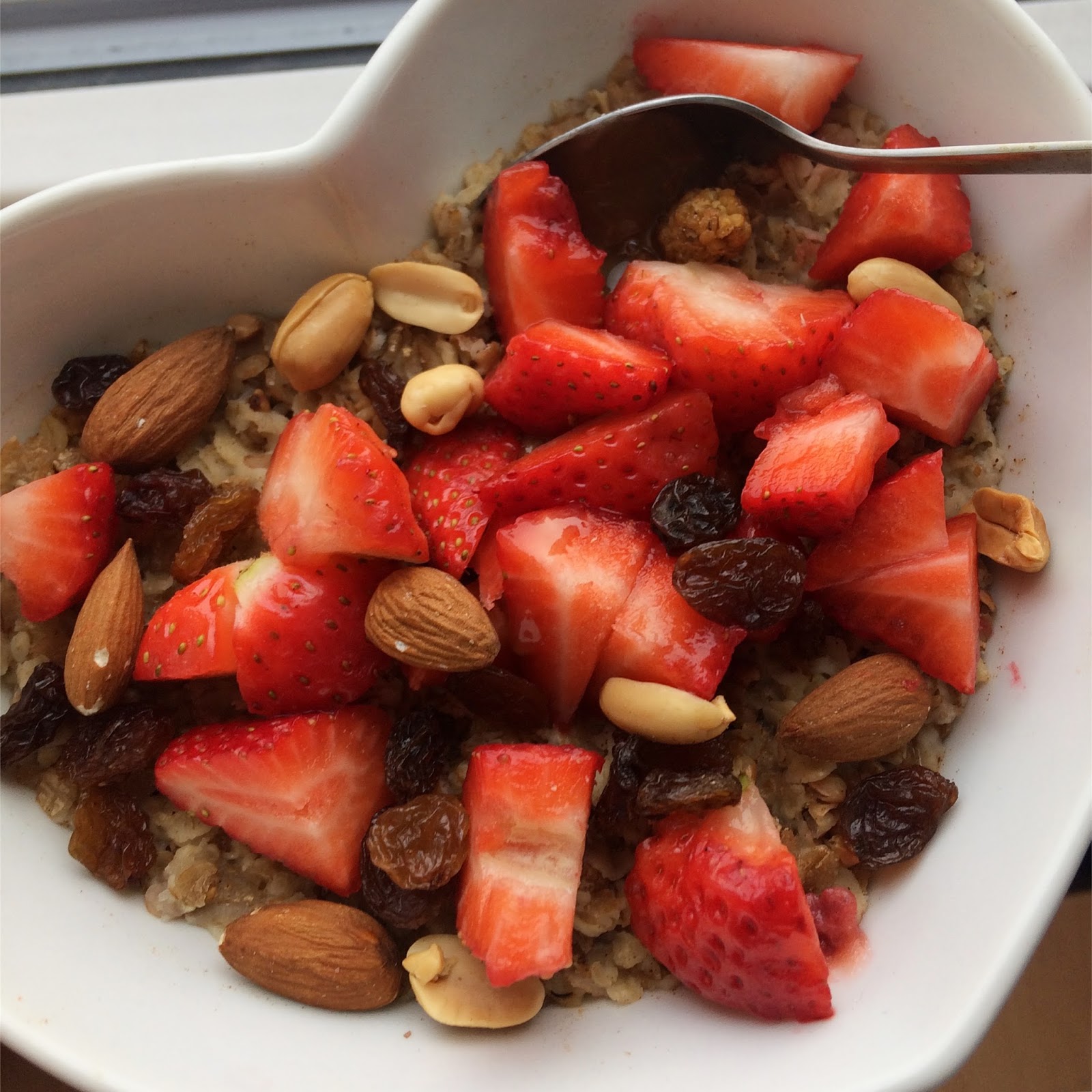 | Snídaně dělá den – moje milionová ovesná vegan kaše s jahodami.  |