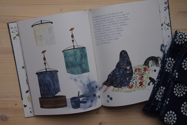 Apolenku z modrotisku jsme si v muzeu hned koupili a ócháme a ácháme u ní i doma. Já tyhle příběhy na způsob Krteček a kalhotky, které dětem na jednoduchém a poutavém příběhu něco vysvětlí, mám strašně ráda. A když k tomu jsou tak nádherné obrázky... Asi mě chápete, že takovouto knížku o látkách a vzorech prostě musíme doma mít.