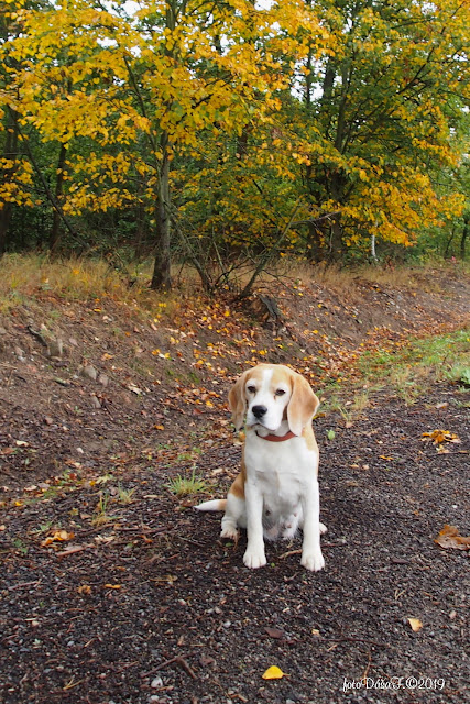 A nedávná ranní procházka s Terri, od nás k lesu.