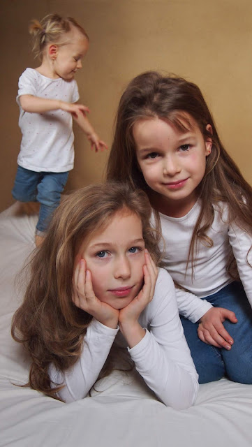 Několik dnů se na těchto pár fotek musím vždycky psychicky připravovat. Mám jen několik málo sekund než začnou dělat blbosti – hlavně Sára. Její náturu asi nejvíce vystihuje předposlední fotka – pořád v běhu. Ani její „copíček“ a sponku udržet na svých místech prostě nejde.
