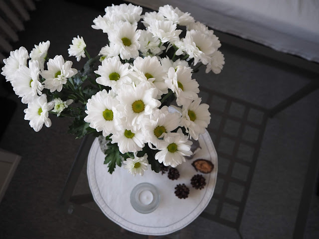 … domů jsem koupila chryzantémy. I po týdnu vypadaly pořád svěže, než jsem dopsala tento článek už nebyly, ale na řezanou kytku vydržely opravdu dlouho …
