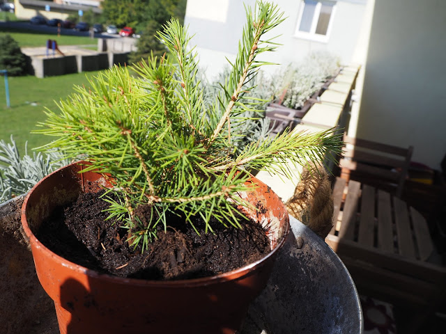 … a jeden malý „alpejský“ stromeček. U něj doufám, že jsme ho nezničili tím, že jel s námi do Ostravy a že přečká to zimní ovzduší tady …