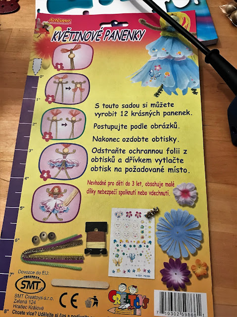 Při nedávné návštěvě hračkářství mne zaujala drobná kreativní hračka či spíše kreativní sada na vyrábění s názvem Květinové panenky. Byla za pakatel, což mne příjemně překvapilo, takže jsem neváhala, sadu zakoupila a "hnedle" jsem měla pěkný dárek k Mezinárodnímu dni žen pro naši nejmladší ženu v mé úzké rodině...