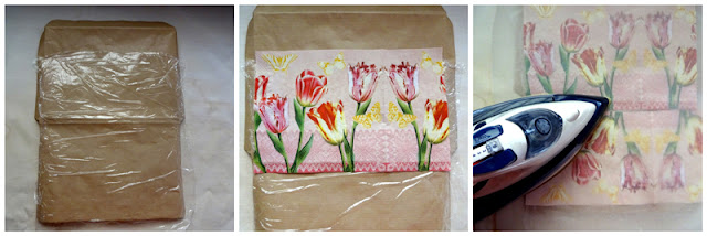Čo robiť doma , keď celý víkend prší ? Asi najlepší čas na tvorenie. Tak nejako to prebiehalo v mojej mysli, keď obidva víkendové dni počasie vyzeralo úplne beznádejne. Dážď je však veľmi potrebný, takže som to brala vcelku optimisticky . Aj tak som už dávnejšie chcela vyskúšať túto zaujímavú techniku, prostredníctvom, ktorej sa dá vytvoriť napríklad aj vlastný baliaci papier . Ani neviem či táto technika má nejaký odborný názov. Podstata spočíva v nažehľovaní servítky prostredníctvom obyčajnej potravinovej fólie na papier alebo látku. Keďže často balím svoju prírodnú kozmetiku ako darček, tento nápad na dekorovanie krabičky alebo tašky mi prišiel naozaj veľmi šikovný.
