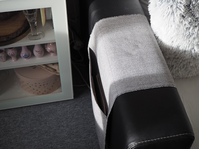 ... na ovladače a papírový tv program jsem ušila kapsu z běhounu na stůl. Neměla jsem ráda, když se, hlavně tv program pořád někde povaloval. V obchodě jsem žádnou hotovou a vhodnou kapsu nenašla. Ušití něčeho takového na rozdíl od kreslení zvládám. Jenom jsem plánovala klasickou látku, výztuhu atd., až mě v obchodě napadlo ušití kapsy z běhounu - skvělý pevný materiál, stačí zahnout, sešít a je to. Otázka 5 minut ...
