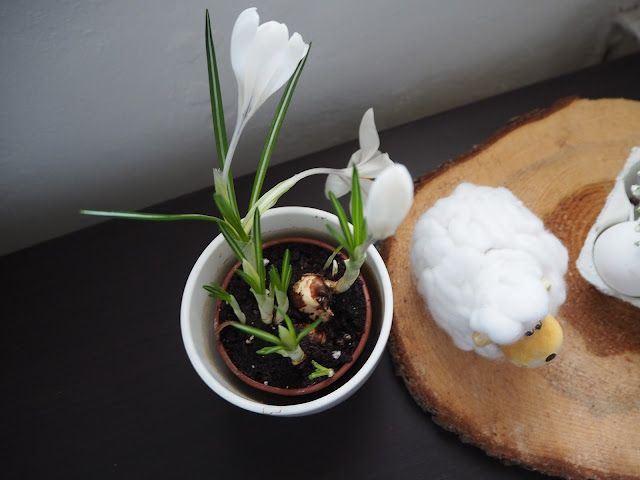 … úterý … stále mám pocit, že doma nemáme dost zeleně. Zaběhla jsem do Obi. Tam už měli jen zbytek krokusů ve výprodejové ceně. Jeden jsem koupila a třeba se mu u nás bude líbit …