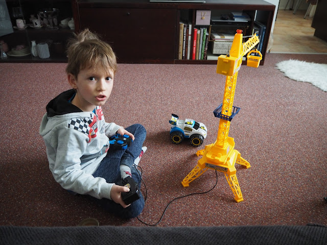 … neděle … byla klidná a doma. Bertík stavěl koleje, maloval, já jsem pletla. Adam se stavil pro vyprané prádlo …