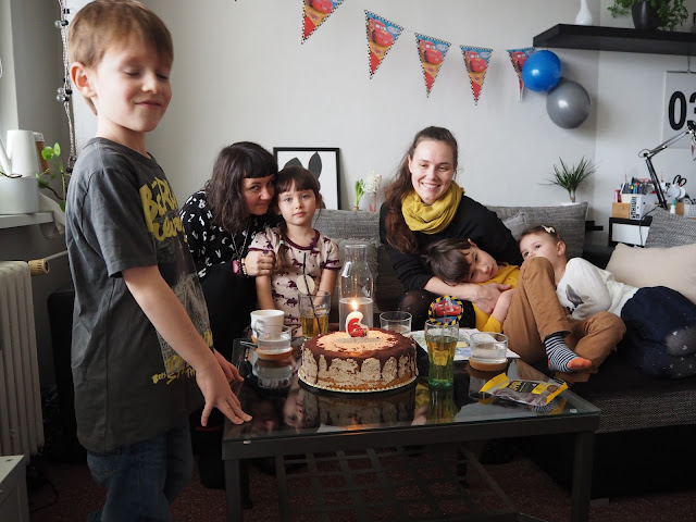 … pátek … měli jsme oslavu Bertíkových narozenin s kamarády z miminkovského cvičení. V pořadí už pátou. Je to naše tradice 😉 …