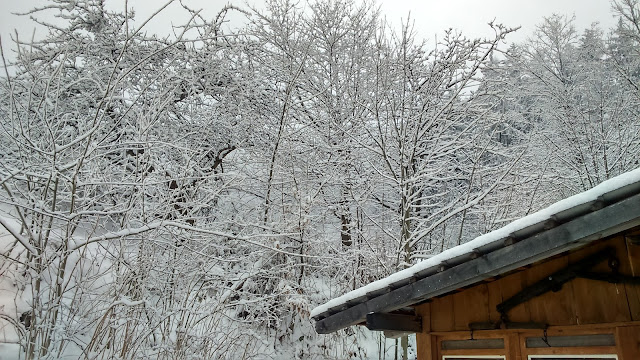 … středa … můj osobní plán na středu bylo zůstat doma a nelyžovat. Děsně mě bolely nohy, hlavně kolena. Vlastně mě bolel celý člověk. Můj plán vyšel, nevytáhla jsem paty z domu a odpoledne jsem byla dokonce i sama. Upekla jsem chlebíček ze zbylých bílků a něco málo uvařila. Ostatní šli na lezeckou stěnu. Nepřálo nám na lyžování počasí. Docela dost chumelilo …