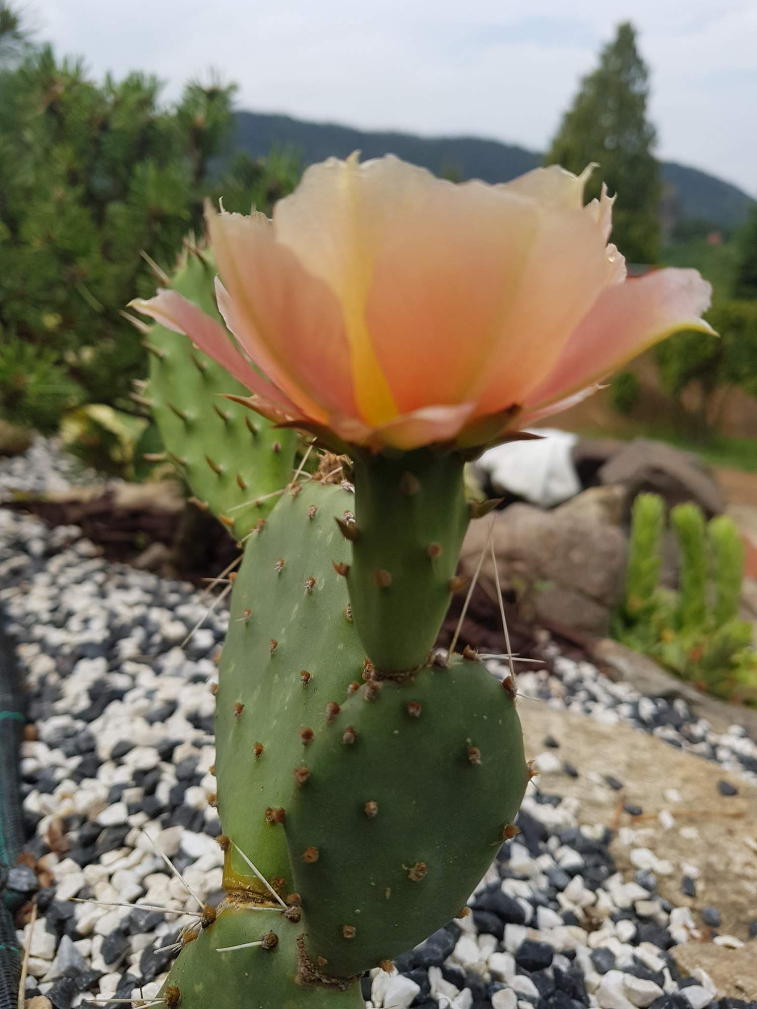 Kaktusy pěstuji v klasické skalce mezi skalničkami a zakrslými dřevinami, což občas i překvapí.