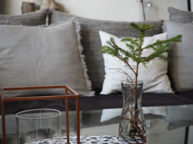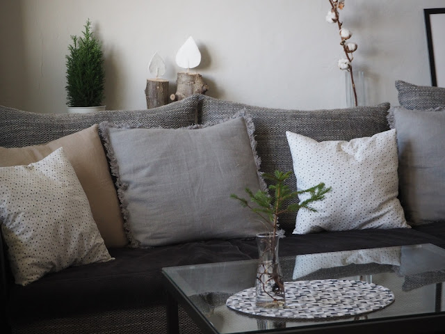 sice zrovna hlásí, že se počasí změní z jarního na zimní, jak to v únoru má být, já jsem ale doma už potřebovala změnu. Zasněžené větvičky na polštářích šly do skříně a vytáhla jsem potahy ze lnu a ty s malými trojúhelníčky. Šila jsem je před dvěma roky. Vloni jsem je vůbec nevytáhla, letos na ně mám náladu …
