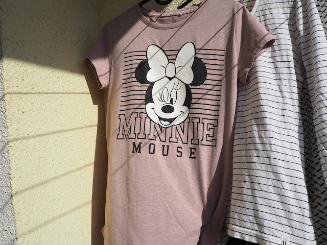 … tričko s Myškou Minnie jsem vzala Bertíkovi pro radost. On má s Myšákem dvě a pořád chtěl ať mám taky, aby jsme mohli ladit :-)) Normálně bych si ho nekoupila. Myslím, že tohle už patří do jiné věkové kategorie než jsem, ale na volný čas to snad projde 😉 … proužek, ten se vždycky hodí …