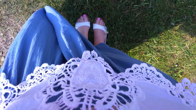 … nebo modrou dlouhou sukni, ještě k tomu až na zem. Tu bych si na léto asi jen tak nekoupila. O halence s tímto lemem bych taky neuvažovala. Jenomže mě to nějak padlo do oka, vyzkoušela jsem to a bylo jasno …
