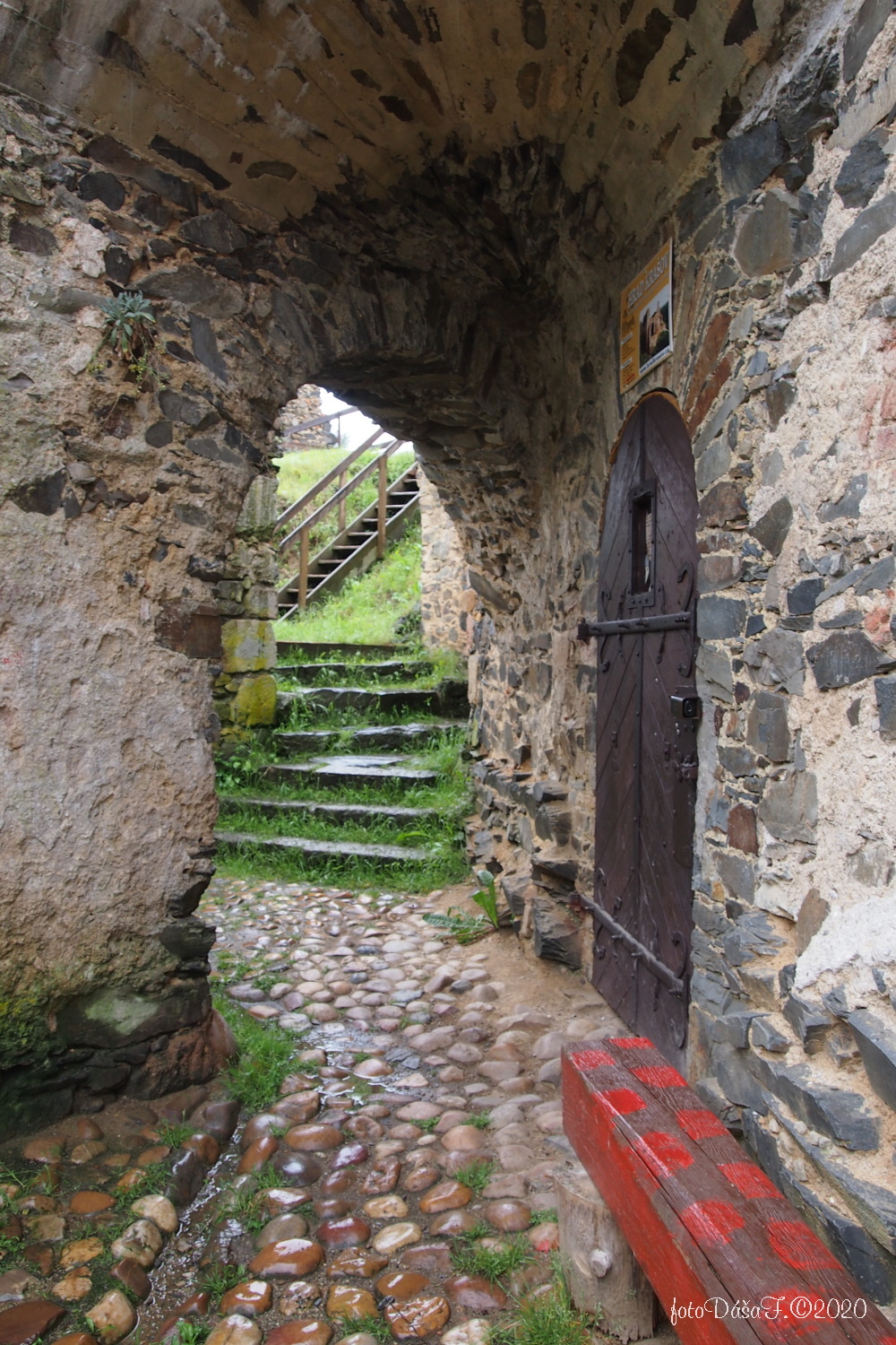 Na hrad jsme došli v pláštěnkách a přestože stále pršelo, prohlídku s výkladem jsme si užili.
