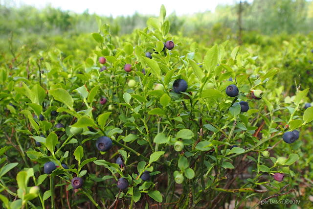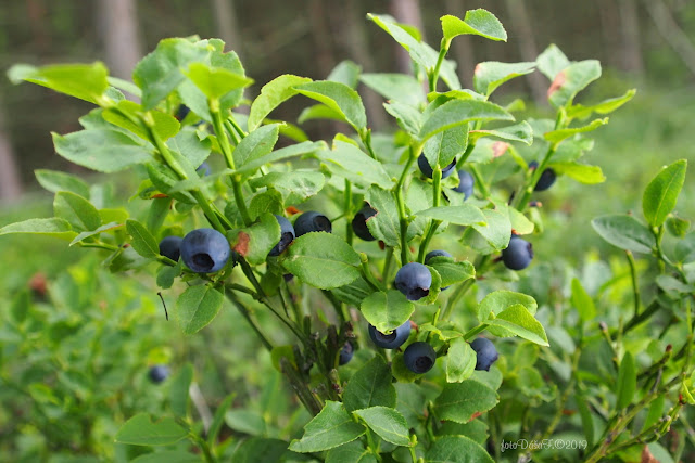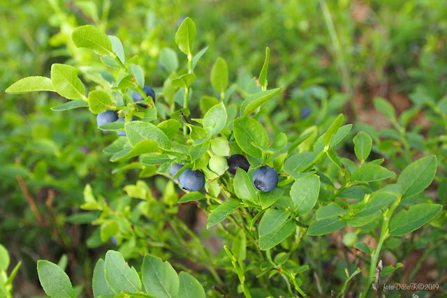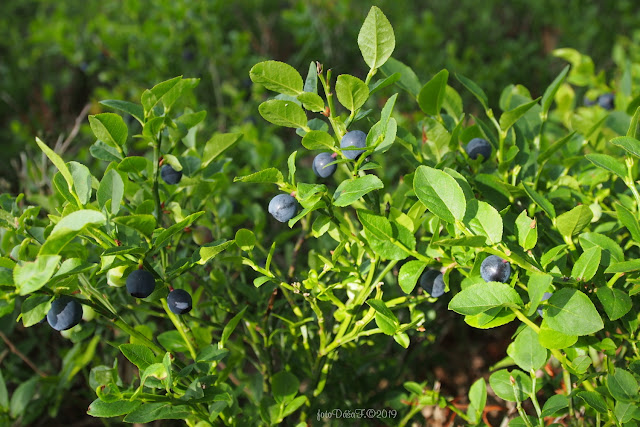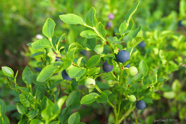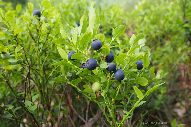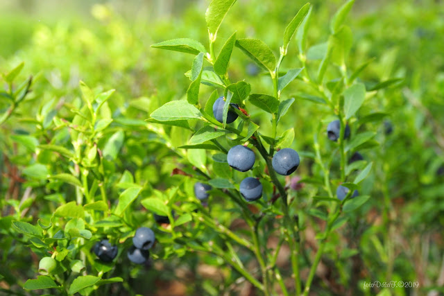 Včera na procházce s Terri si Míra všiml, že u nás už rostou borůvky