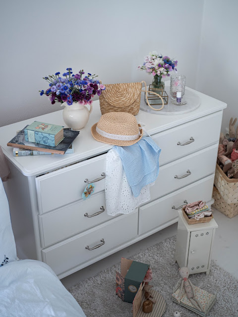 ... má hlavne Ninka meniny ♥ Je však fajn si zaspomínať, čo všetko sme zažili a aké leto zatiaľ máme, čo sa u nás na záhrade deje... Je toho toľko, až o tom nestíham písať na blog! Som preto rada, že sa mi podarilo zachytiť aspoň niekoľko útržkov... ako napríklad ruže, ktoré mali tento rok pekné prvé kvitnutie, prvý hrachor a nevädzu - ach toľko jej je ♥ A v neposlednom rade nová farba na dome (článok čoskoro)! Z tej sa teším asi najviac... dokonca viac, ako z nákupu v Ikea :-) Ninka si na meniny želala novú komodu a táto je z rovnakej série, ako jej posteľ. Čo na ňu poviete? Mne by sa tam hodilo ešte zrkadlo ♥