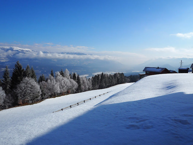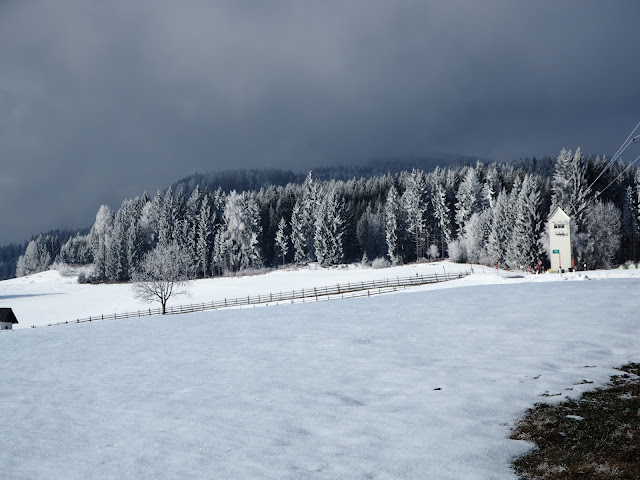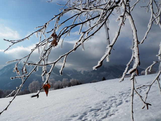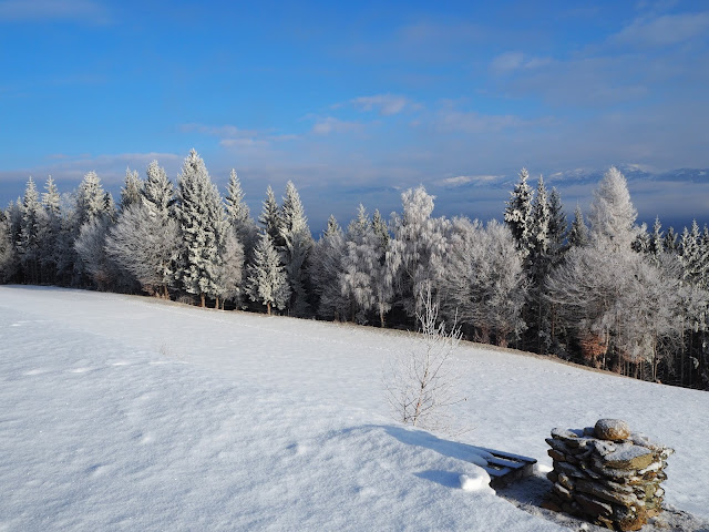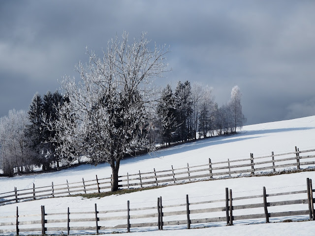 v pondělí už bylo nádherné počasí. Stromy s lehkým popraškem …