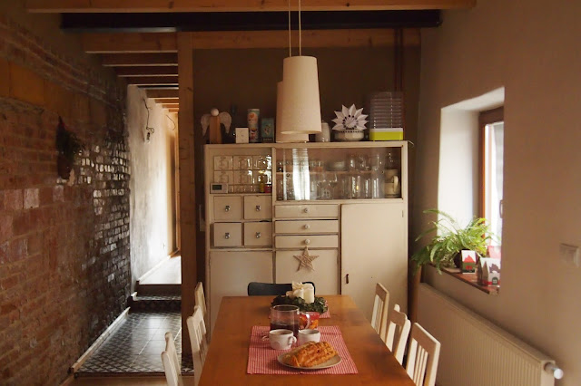 Nestihli jsme letos vyzdobit dům hned o prvním adventním víkendu tak, jak to obvykle děláváme. Končili jsme tou dobou naši covid karanténu, já šila o sto šest jako v každé předvánoční období. A tak jsme jen rychle umotali věnec z břečťanu ze zahrady. Byl krásný, bohužel jen asi dva týdny. Uschnul.